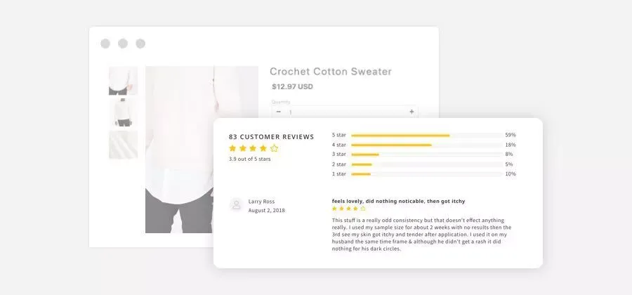 俗话说“王婆卖瓜,自卖自夸”,咱也不能一个劲地在产品页面展示自己产品有多好,得让用过的顾客来说它的好,它的价值点。