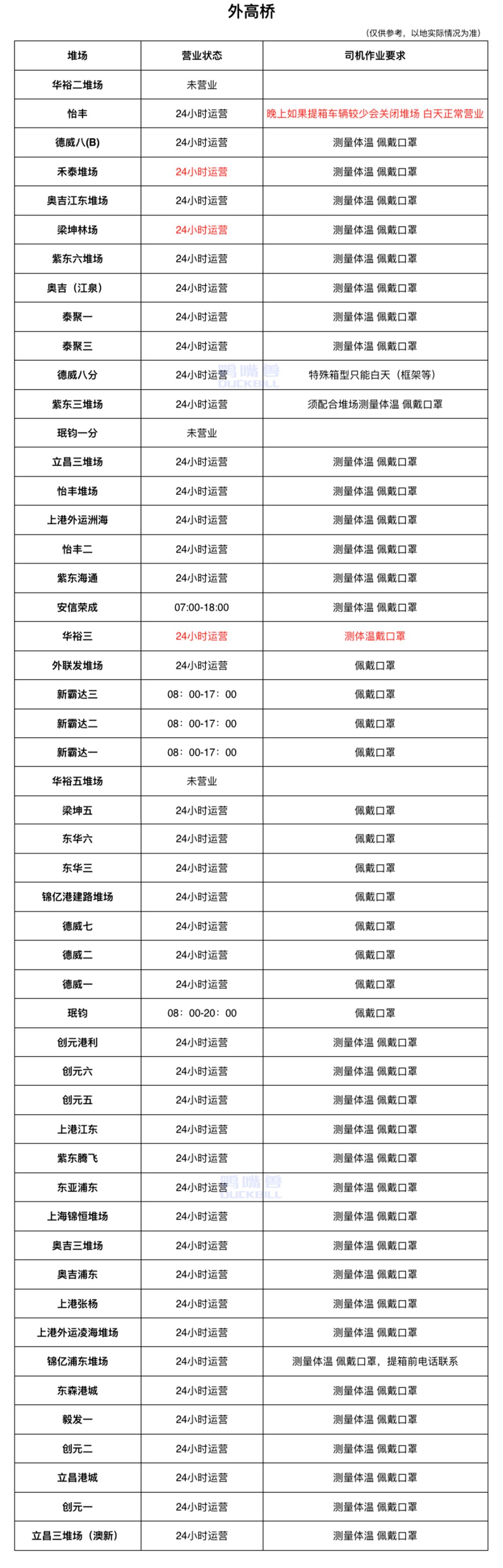 (特别感谢上港外运堆场为了方便同行知道实时信息,主动联系更新其堆场的营业信息)
