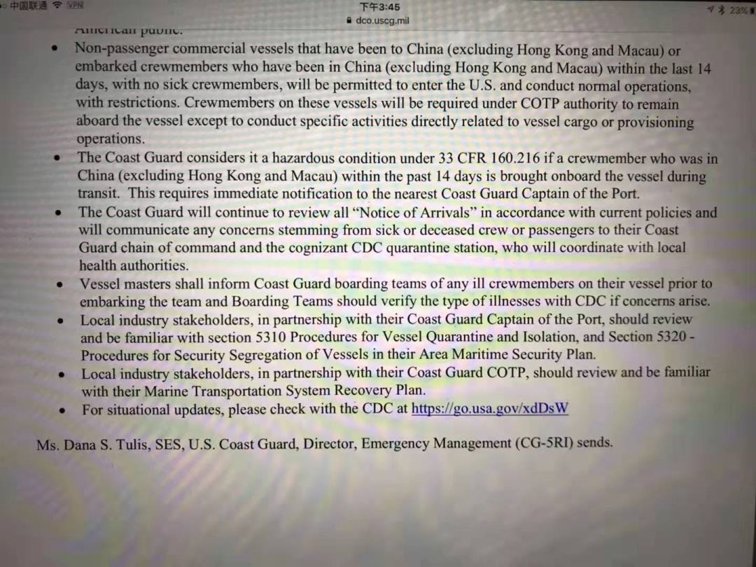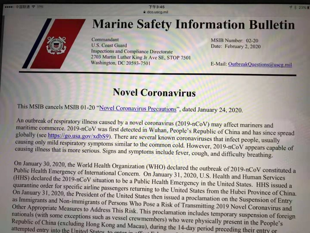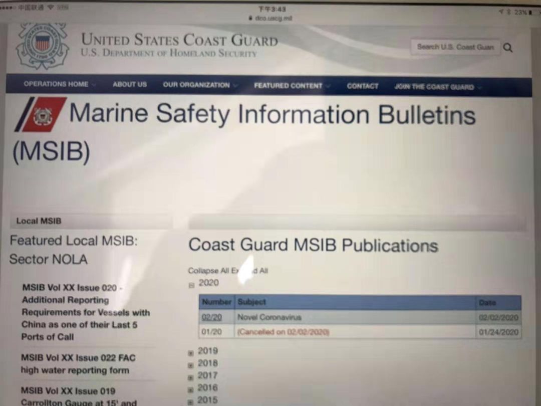 美国海岸警卫队网页通知:网页地址:news.uscg.mil