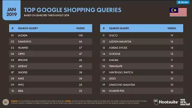 另外,2019年在Google上,马来西亚最热门的搜索词显示了当地消费者对电子产品、时尚商品和玩具的偏爱。