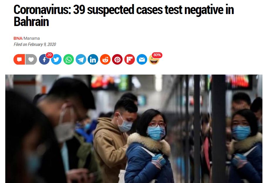 巴林王国于上周日确认,所有39例新冠状病毒疑似病例均呈阴性。
