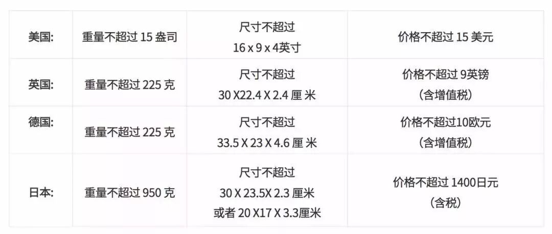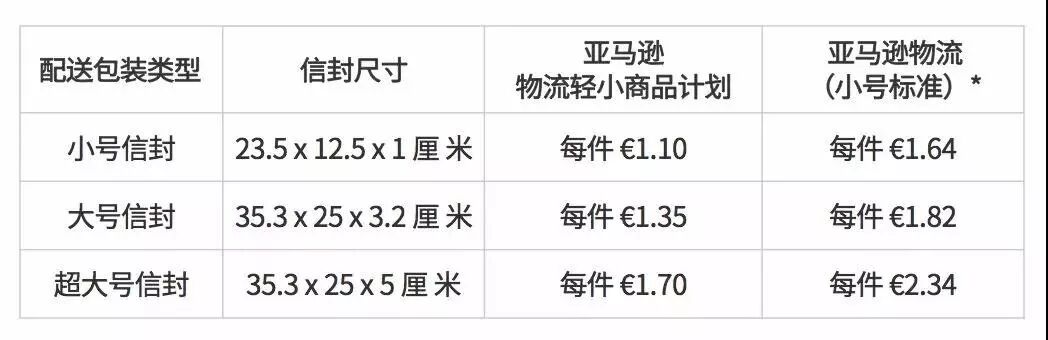 亚马逊Primeh合格商品意味着百万亚马逊上最忠诚,最活跃的买家可以看到您的商品。亚马逊A-to-Z的保障增加了买家对商品的信任感。除了亚马逊北美站,日本站,英国、德国站点之外,亚马逊物流轻小商品计划已在法国、意大利、西班牙站点上线,至此,您可以将自己的轻小且低单价商品通过该计划上线到欧洲5国,帮助您拓展欧洲更加省钱省力!在亚马逊法国、意大利、西班牙站点新上线的亚马逊物流轻小商品计划将使用统一的商品尺寸,销售价格和出库重量要求,方便商家统一备货和产品包装,同时提供相对于标准FBA的更低的配送费用(最多节省53%),真正物美价廉。亚马逊物流轻小商品计划在亚马逊德国站点,隆重推出配送网络扩展(中欧计划)使用亚马逊物流轻小商品计划的卖家可以选择加入配送网络扩展(中欧计划),卖家只需允许将自己的库存存放在德国、波兰及捷克,即可加入中欧计划。加入该计划后,亚马逊将要求您将亚马逊物流库存运输到位于德国的一个地址,之后亚马逊将自行决定如何在德国、波兰和捷克的亚马逊物流运营中心之间分配库存。使用此服务不需要额外付费。配送费用将在原有亚马逊物流轻小商品计划的基础上每件商品再减少0.3欧元。因此您的轻小商品在德国的配送费用将低至0.8欧元/件(小号信封尺寸)。注意:要加入该计划,卖家需要在波兰和捷克共和国办理增值税 (VAT) 登记。您还需要遵守有关远距离销售起征点和内部统计阈值的要求。有关更多信息,请查看配送网络扩展(中欧计划)的纳税和申报要求帮助页面。亚马逊物流轻小商品计划欧洲站点与标准FBA费率表对照对于参与轻小计划的每件商品,其配送费用通常低于类似商品的标准亚马逊物流配送费用对于包含两种订单类型商品的混合订单,亚马逊将按商品价格高于 $5.00 且不超过 $15.00 的标准收费。对于销售价格高于 $15.00 的商品,将收取标准亚马逊物流费用。日本轻小计划基于商品价格配送费用不同,以下表格比较了标准尺寸的非媒介类商品的亚马逊物流轻小商品计划配送费用和相应的标准亚马逊物流配送费用。特殊时期,跨境电商持续降低成本是保持公司生存发展的策略首选。亚马逊物流轻小商品计划是一个省钱利器,有做小件产品的卖家要用好这张牌。
