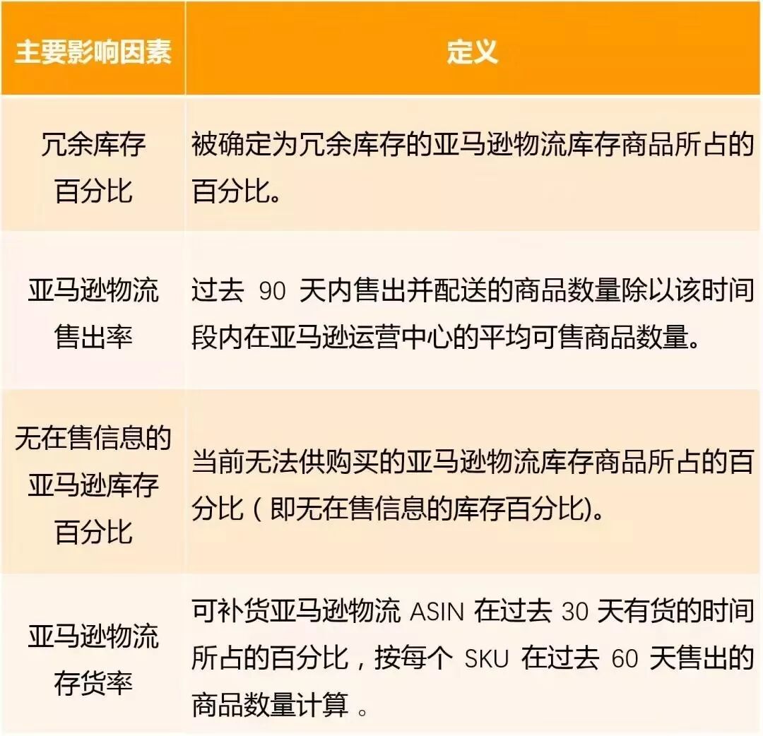IPI的构成主要有4个影响因素:冗余库存百分比、亚马逊物流售出率、无在售的亚马逊库存百分比及亚马逊物流有存货率影响。
