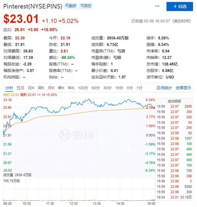 对于2020年,Pinterest预计收入将突破市场预期的15亿美元,至15.2亿美元。亮眼的财报表明,Pinterest近期对其App的调整有成效。上个季度,Pinterest重新设计了App,方便用户发掘新内容。以上多重利好因素的推动下,Pinterest股价盘后大涨17.12%至26.95美元,截至周四6日收盘,该股已较12月中旬低位反弹近30%。