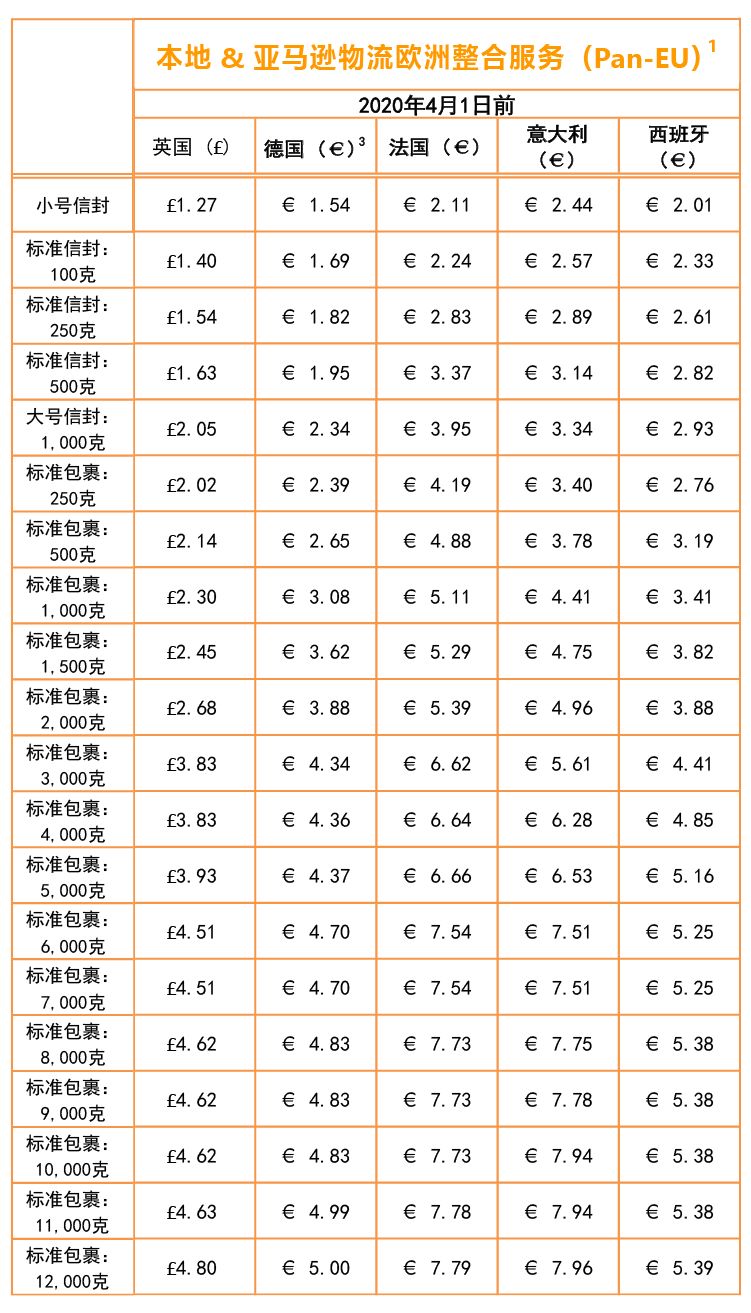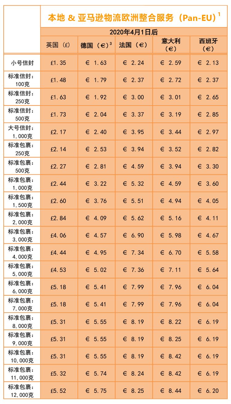 从2020年4月1日起,英国、德国、法国、意大利和西班牙的本地亚马逊物流、亚马逊物流欧洲整合服务和欧洲配送网络都将调整配送费用。小编帮大家整理了2020年4月1日前后配送费用,方便大家对比查看。