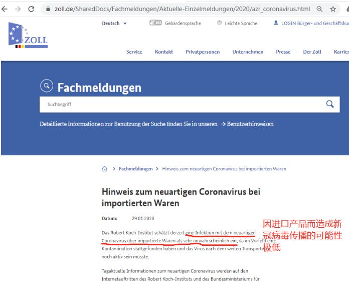 世卫组织1月30日再次开会讨论疫情之后,宣布将新型冠状病毒定义为国际关注的突发公共卫生事件PHEIC。这两天出口产品被客户拒收的消息也在刷屏跨境和出口圈的朋友人心惶惶,很多跨境卖家焦急的询问德国欧通Prolinx,想了解目前往欧洲出口产品是否会受影响。德国欧通Prolinx在查到德国海关官网发布的相关消息:
