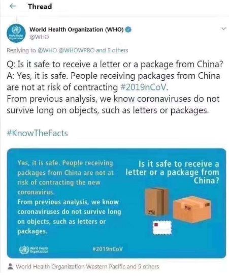 此外,世界卫生组织公开发布信息,从中国发出到海外的货物,不会携带病毒,这个疫情不应该影响到跨境电商出口!这个下面的截图也可以发给买家看,让买家不用担心。