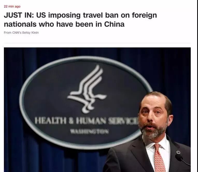 船长BI获悉,最新消息,美东时间31日下午,白宫就“新型冠状病毒”疫情举行发布会,美国卫生与公众服务部部长阿莱克斯·阿扎(Alex Azar)宣布此次冠状病毒爆发为公共卫生紧急状态。从美东时间2月2日下午5时(北京时间2月3日上午6时)开始,过去14天内曾到访中国的外国人(美国公民和直系亲属除外)将被暂时入境。