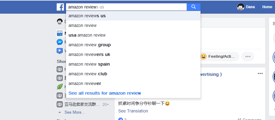1、一般Facebook的测评小组都会按站点分,卖家直接输入“Amazon review+站点”,就可以发现群组。
