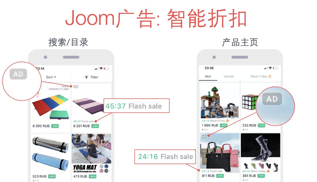 如上图所示,智能折扣和现在的广告位基本一致,都会带有AD角标,显示在最佳,搜索/类目等板块,但是会增加Flash Sale标识来吸引消费者点击。