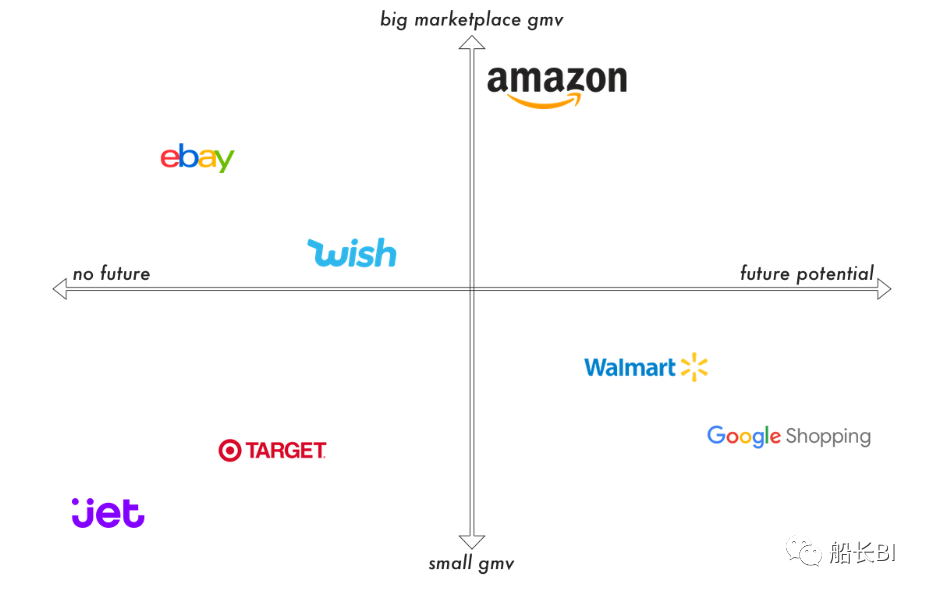 沃尔玛、eBay、谷歌Shopping、Target和Wish都在与亚马逊争夺市场份额。沃尔玛是一个明显的领导者,因为尽管eBay在网上购物市场的份额仅次于亚马逊,但它抓住了增长的机会。包括Instagram和YouTube在内的社交网络也在建立市场,试图提供社交商务和与其他购物平台不同的发现。