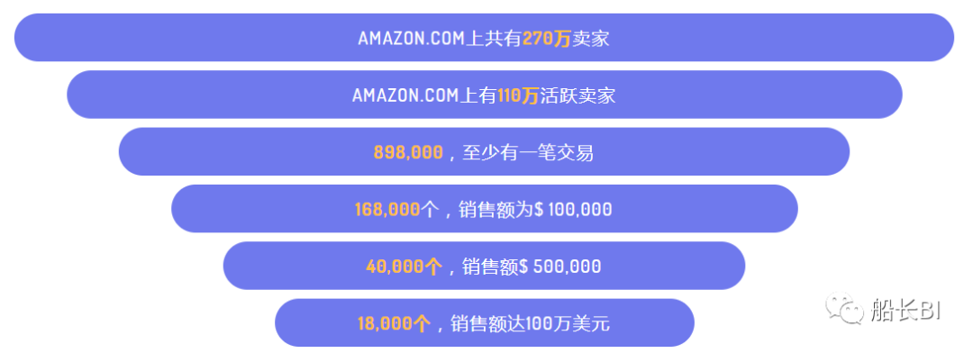 在美国,亚马逊卖家有270万,活跃卖家达到了110万。以下是亚马逊美国站2019年的卖家和销售额数据情况。