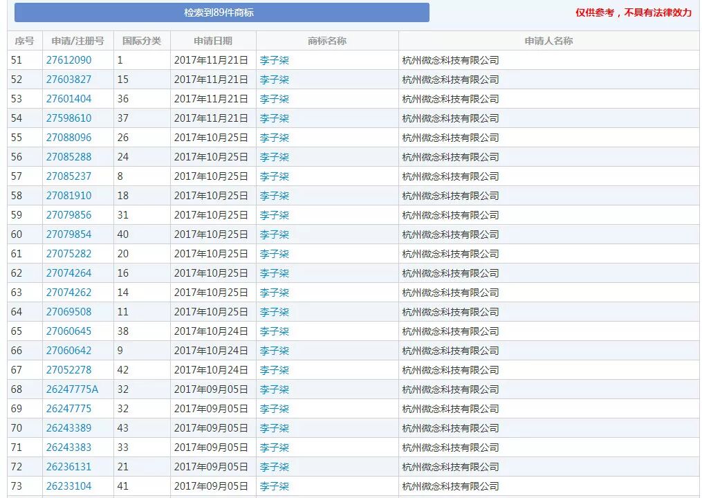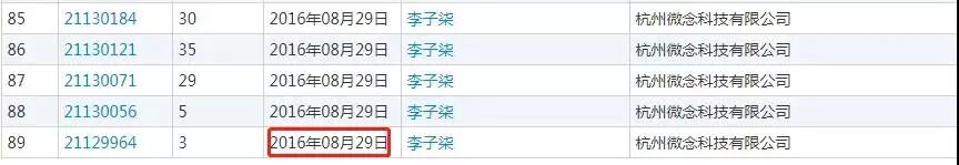 早在2016年“李子柒”还未蹿红时,其所属公司——杭州微念科技有限公司就已经开始进行商标申请。
