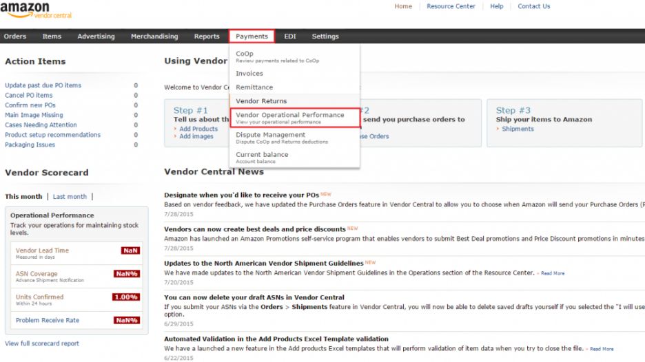 登录卖家中心后,选择Payments选项卡上以选择卖家运营绩效(如下所示):