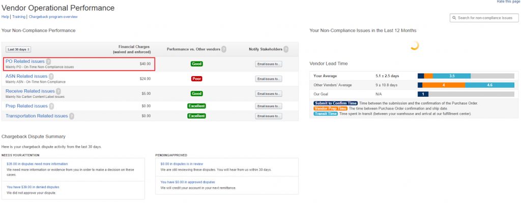 不符合规定的表现数据(Non Compliance Performance data)可以在左上角看到,在这里,卖家可以查看各种类别的退款费用,下面将针对亚马逊退款展开讨论。