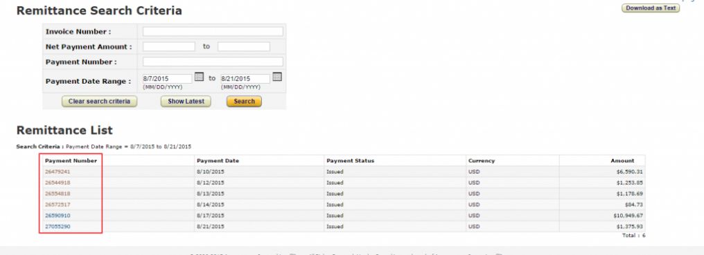卖家可以从汇款清单中选择支付单号(如下图所示):