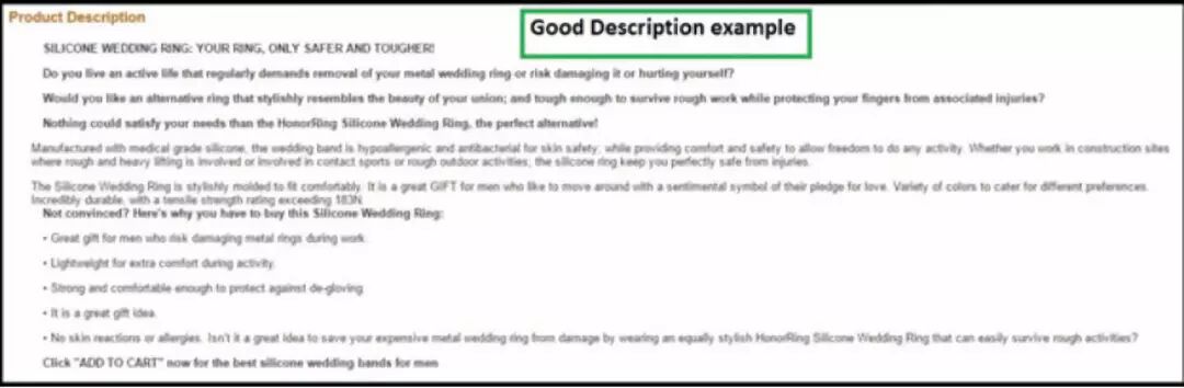 大多数客户并不喜欢在产品列表页面上浏览。他们中的大多数甚至都没有阅读说明。如果这样做,他们可能正在寻找有关该产品的其他信息。但是描述在亚马逊的算法中很重要。使用最有利可图的关键字为您的产品写一个正确的描述。由于提供了很多空间来添加描述,因此您也可以使用其他一些利润不高的关键字。