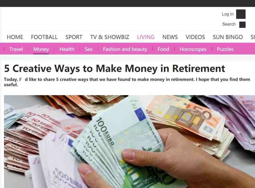 再看标题:退休后五种可以赚钱的创新方法。然后导语用第一人称介绍这5种方式。附上数钱的图片,仿佛看完这些方法就真的能在家里数钱。