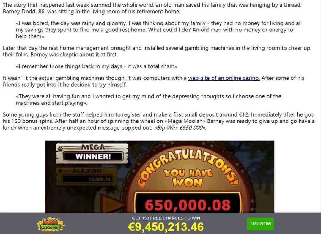 在看到别人玩得很开心后,老人也决定尝试,于是就让几个年轻人帮忙,先给他充了12欧元,得到150个金币去玩这个游戏。在玩了半个小时他准备放弃的时候,结果发现自己赢了65万欧元。半个小时,12欧换65万欧,任谁都觉得不可思议。
