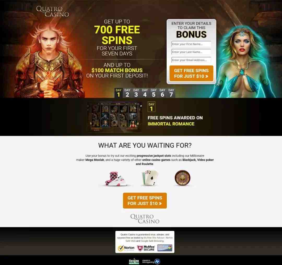 一进去就是casino的常见画风,注册框边上还会有大大的提示语告诉你,在你最开始的7天中每天都会有免费的游戏让你玩,下方可以看到每天形态各异的游戏类型。免费玩7天,同时又有机会获得奖金,零投入就可能获得高额回报,这样的羊毛不薅白不薅。于是这样就让玩家至少7天都能在这里待着,至于7天中会发生什么,那就看个人造化了。