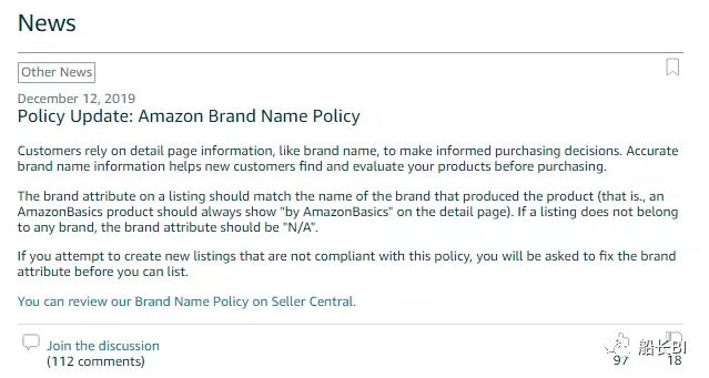 亚马逊更新品牌名称政策 船长BI获悉,近日,亚马逊在卖家后台和卖家论坛相继发送了品牌政策更新的通知。 卖家可以在卖家后台切换至英文版查看,中文版目前没有显示该通知: (图源亚马逊卖家后台) 也可以在亚马逊官方卖家论坛上查询和浏览该则通知: (图源亚马逊卖家论坛) 亚马逊品牌政策更新详情如下: 亚马逊表示,客户依靠详细的页面信息(例如品牌名称)来做出明智的购买决定。准确的品牌信息可帮助新客户在购买前找到并评估您的产品。 因此,Listing的品牌属性应与生产该产品的品牌名称相匹配(即,AmazonBasics产品应始终在详细信息页面上显示“ by AmazonBasics”)。如果Listing不属于任何品牌,则品牌属性应为“ N / A”。 如果您尝试创建不符合此政策的新列表,则系统会要求您先修复品牌属性,然后再列出。 在变更后的品牌名称政策中, 关于什么是非品牌产品,亚马逊是这么定义的: 当一个产品是无品牌的,这意味着该产品不属于任何品牌。在这些情况下,卖家需要使用品牌属性中的值“N/A”来表示产品与某个品牌无关。非品牌产品没有一个共同的名称、标识或其他标识其产品或包装的名称。 (图源亚马逊帮助页面) 无品牌备案的卖家将受到该政策变更的影响 关于亚马逊变更品牌名称政策,船长BI注意到,很多卖家还表示不是很理解,看得云里雾里的;也有卖家称,如果亚马逊强制推行这种政策,对于无品牌备案的小卖将带来很大的影响。 该政策生效后,无品牌备案的产品将受到如下影响: 不能直接填写品牌名称 品牌属性必须为“ N / A” 不符合要求的Listing可能不会被显示 有卖家表示,不遵守该政策将不能出售产品,因为Listing上的品牌名称是不正确的。并且,已经有卖家因为这个原因,Listing被取消了。 (图源亚马逊卖家论坛,受影响的卖家反馈) 此外,还有卖家在填写品牌名称时, 弹出如下错误提示: (图源错误提示) 亚马逊要求,卖家在使用此品牌名称列出ASIN之前,必须先在亚马逊上注册自己的品牌。并遵守品牌政策。 同时,在错误提示中, 针对品牌是否注册商标,亚马逊给出了解决方案: 1、如果该品牌是注册商标,需要到指定的品牌注册页面进行注册; 2、如果它不是注册商标,并且卖家认为自己遵守亚马逊的品牌名称政策,需要联系卖家支持并提及出现的错误代码。 船长BI提醒: 商标和品牌不是同一回事。你可以拥有一个没有商标的品牌,但商标有助于保护你的品牌。 品牌名称政策变更,是利还是弊 其实,从亚马逊变更品牌名称政策来看,船长BI认为,一方面亚马逊期望于完善品牌信息突出产品特点;另一方面则是堤防假冒产品上架,提升平台的竞争力。 近年来,亚马逊对品牌的重视程度越来越高。相信有关注的卖家会发现,亚马逊这几年推出的各种服务项目都是针对品牌备案的卖家所建立的。在2019亚马逊全球开店跨境峰会上,官方也重点提到亚马逊加速器等品牌授权项目,并强调品牌将是2020的趋势。 对于没有品牌备案的卖家而言,未来,想要扩大市场、提升销售、赢得更多的利润将越来越难。 那么,卖家该如何应对? 船长BI建议: 1、现在还没有注册品牌计划的卖家,不能要随意填写品牌名称,按照最新政策要求在Listing的品牌属性中填写“N/A”即可。 2、有计划注册品牌的卖家,可以访问亚马逊品牌备案官网,仔细阅读品牌注册的相关信息,并尽快完成品牌2.0备案。并且,在产品包装上的品牌名称要和Listing的品牌名称对应,以免影响产品上架销售。 品牌注册地址:https://brandservices.amazon.com/eligibility 船长BI提醒: 在列出带有新品牌属性的产品之前,你可能需要获得亚马逊的批准,请查看你是否可能收到的潜在Listing错误代码列表及其相应的后续步骤。 除了品牌名称政策变更之外,亚马逊近日还宣布将禁止第三方卖家使用FedEx Ground进行Prime送货,该禁令将于本周生效。如果是非Prime订单,不受影响,仍然可以使用FedEx Ground为买家送货。 年终旺季还在继续,卖家们在冲刺旺季的同时,也需要随时关注下亚马逊最新的政策变动,对于还没关注以上政策的卖家需要特别留意,并做好相应的调整。