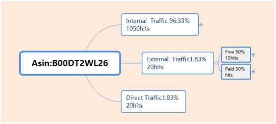 对于该asin当日流量来说站内流量(internaltraffic )占了绝大部分,高达96.33%。