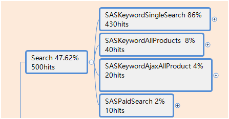 细心的人就应该能发现,比如search 下面是不是有个可以扩展的按钮,这就是代表search 下面还有一系列的细节来源。我们接着看站内流量的Search下面的节点
