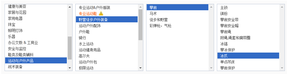 敦煌网运动户外行业Mountaineering Crampons产品上传路径: