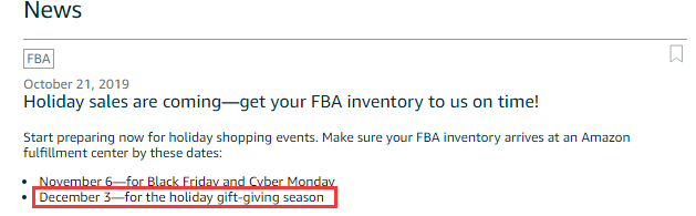亚马逊FBA:12月3日停止圣诞季入库收货