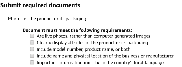 如果你选择自己是“制造商”或者“both", 那你只要提供产品包装图片就行。