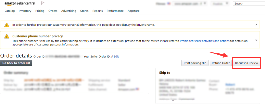 昨日,有很多卖家向船长BI反馈,亚马逊悄悄对其后台订单管理页面做一个调整——添加了一个“request a review”,即“请求评论”的测试按钮,不仔细观察的卖家可能第一眼还发现不到。