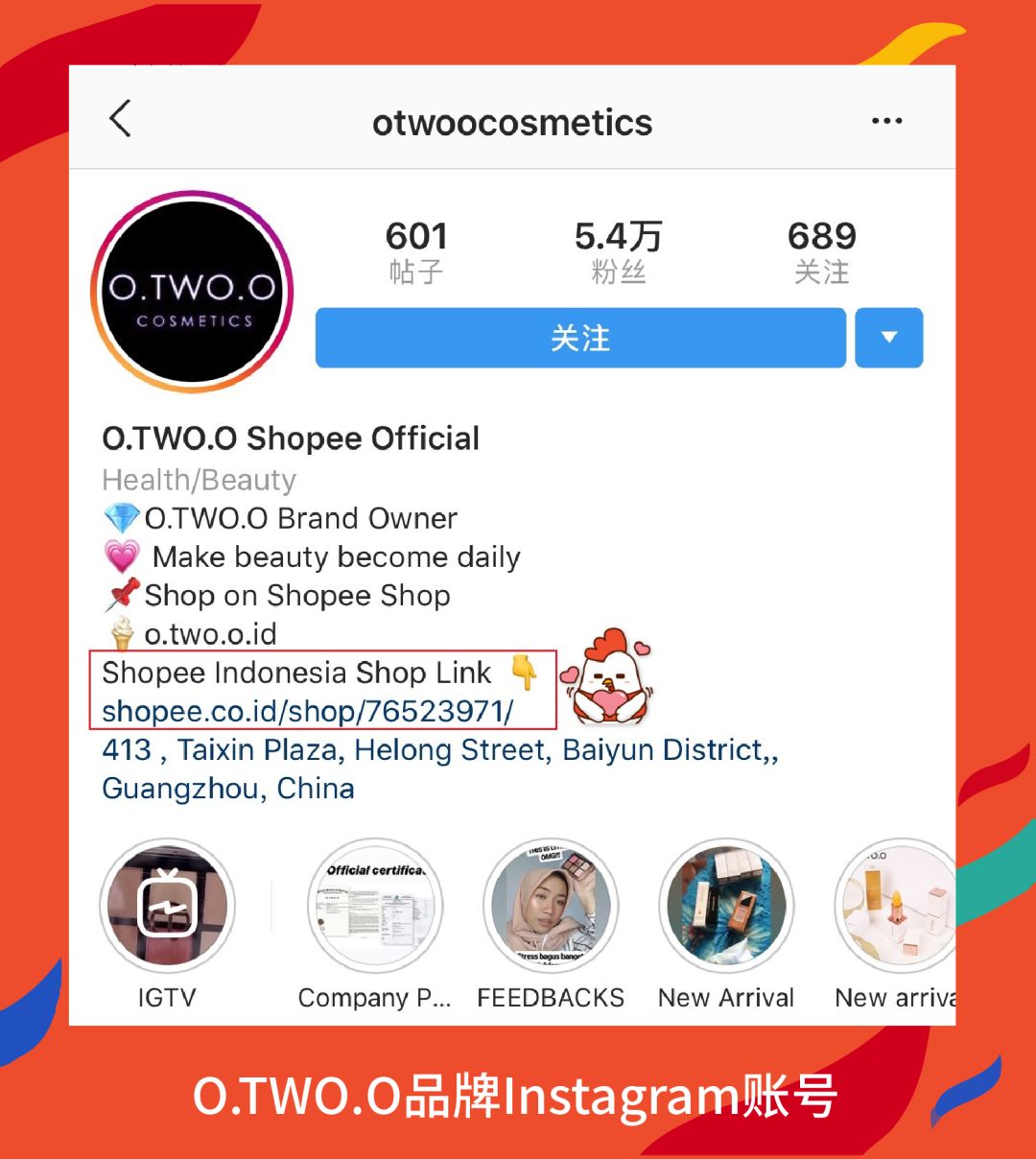 目前O.TWO.O品牌在Instagram上的其中一个印尼账号已有5.4万粉丝,并且一直保持较快的涨粉速度。粉丝中基本是精准的印尼用户,大部分用户都在Shopee印尼店铺有过购买行为。该账号在O.TWO.O开设Shopee印尼店铺时开始运营,主要来配合店铺维护粉丝,输出品牌内容。