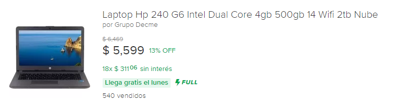示例: Notebook HP Dual Core 425 LED 14 320 GB 4 GB Wifi HDMI
