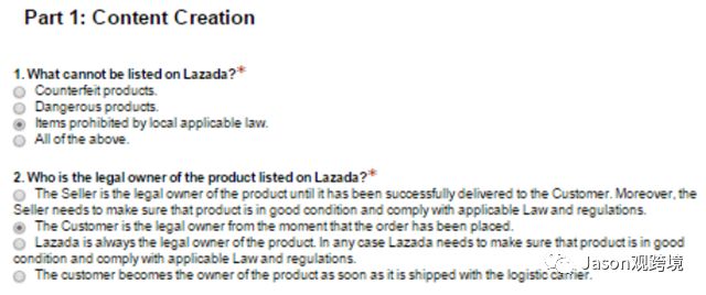 (2)自行观看入驻视频和课件,并通过Lazada的入驻测试(> 50%)