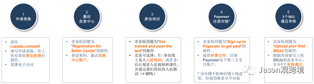 在www.lazada.com/sell,用英文填写在线申请表格。并上传有效的营业执照扫描件,签署电子合同。