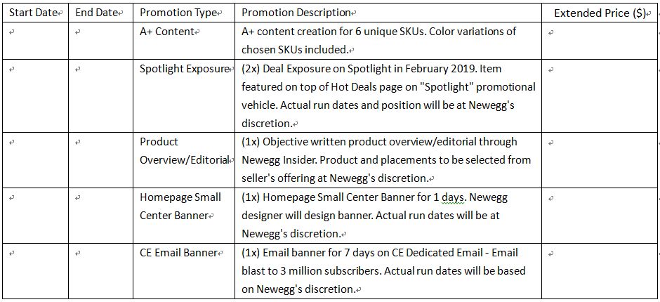 之前蛋蛋酱给大家整理过很多Newegg提供的免费促销引流获客方法,今天想再跟大家介绍一种虽不免费,但绝对物超所值,让您流量倍增的营销推广服务方案:MDF(Market Development Funds)。 MDF是Newegg市场促销团队为卖家量身打造的品牌推广及店铺引流工具,其包含有站内、站外、线上、线下等各种推广渠道,涵盖了邮件、网页广告等多种引流方式。 具体申请流程 01. 卖家如果希望通过MDF的方式来为自己的产品获取流量扶持,那么可以首先与自己的账户经理进行沟通,并提交一些希望特别推荐的商品名单 02. 为了确保您的MDF投入可以收到理想的回报,账户经理会根据您的具体店铺运营情况以及产品类型,为您进行市场评估 03. 在初步预判对您的产品进行MDF投入是可以得到相对比较好的销售回报之后,就进入MDF方案策划阶段,此时账户经理会为您提供一系列的流量扶持计划和营销推广渠道组合方案供您选择 04. 卖家可以根据自己过去的市场推广经验,希望投入MDF的预算情况,以及按照账户经理的推荐,确定MDF初步方案 05. 产品经理会将MDF初步方案提交至Newegg市场促销团队进行进一步的优化,并确定MDF投放时间段及方案服务报价 06. 卖家如对优化方案与服务报价没有异议,那么双方就可以确定最终方案,并签署合作协议 07. 在投放结束后,Newegg市场促销团队和账户经理会为卖家整理MDF投放效果报告,以供卖家参考,并为未来的投放提供建议 下面的表格就是一份MDF投放方案的范例: 那么MDF的具体渠道都有哪些呢?且听蛋蛋酱给您一一道来: On-Site 站内推广 该种方式是利用Newegg网站的流量和广告位来提高店铺的流量。Newegg会将卖家的产品置于首页促销版面,同时在产品对应的类目/子类目的网页中占据广告位,吸引特定的客户群。 Email Marketing 邮件营销 该种方式是利用Newegg向客户发送的促销邮件来提高品牌/店铺的知名度和流量。Newegg会将卖家的产品加入到要发送给客户的促销邮件中,这类邮件通常包括强有力的促销产品及创新产品,对顾客有极大的吸引力。同时在一些特定的邮件中,还会有促销版面可供卖家的产品露面。 External Marketing 站外推广 该种方式是利用在站外的广告位或是搜索排名来进行引流。Newegg一直在用Google Shopping、Slickdeals、 Facebook及Instagram为主的站外渠道对卖家的品牌或单个商品进行推广,使得潜在顾客在搜索某产品时,能够有更大几率转换为网站及店铺的消费顾客。 Newegg Studios 新蛋电台 新蛋电台是Newegg自家出品的视频节目,主要以产品测评展示等方式来吸引顾客。Newegg有专门的制作团队,会根据商家产品的特点,全方位展品牌故事、产品对比等,并配有专业摄影师,以完美的角度捕捉您的产品。 Print 随包广告 该种方式是将商家的促销广告打印成张,附在Newegg发出的包裹中,使得Newegg活跃顾客均能了解商家的产品及促销。Newegg随包送出的宣传单广告可以是单面或双面,可有效提高顾客对商家店铺、产品和促销的了解,提高获客几率。 Brand Advocate 品牌营销 品牌营销计划是通过Newegg的专业人员为卖家提供定制化促销计划的方式来提高销量。Newegg会为卖家提供专业的营销经理,根据卖家的个性化需求及当下的市场机遇来定制运营计划,同时会提供当前市场的第一手资料供卖家参考判断,力求双方共同制定出最优方案。 如果Newegg的专业促销服务恰好就是您所需要的,那么请联系您的账户经理讨论MDF的具体方案。当然,如果有什么问题也可以留言,蛋蛋酱一定会一一解答哦!下期见!