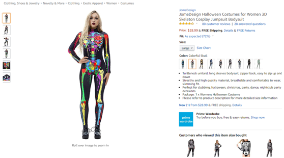 船长BI获悉,据有关数据显示,在2018年万圣节期间,南瓜、热狗和大黄蜂服装分别占据了热销榜的前三位。 而今年,从亚马逊万圣节产品销售的趋势来看,万圣节服装更受买家欢迎。下面,让我们来看看2019年在亚马逊上几款比较有趣的万圣节热销服装。 (图源亚马逊) 该服装提供多达38种图案和配送。买家可选择性非常多。四星级以上好评率达80%。值得注意的是,销售这件产品的卖家在listing标题中添加了与“圣诞节”相关的关键词。由此可见,该套服装的可适用的节日不局限于万圣节。 Happy Halloween (图源亚马逊) 这套服装非常的百搭,目前已有953条客户评论和53个Q&A,可见其的受欢迎程度非常好。 Happy Halloween (图源亚马逊) 充气猛禽服装非常适合万圣节装扮,万圣节服装派对,万圣节之夜活动。目前,在亚马逊上有非常多类似的服装在销售,都非常热销。 Happy Halloween (图源亚马逊) 有趣的花生酱果冻万圣节服装理念,创意性十足,适合万圣节装扮派对、舞会等,好评率非常高。可以作为万圣节选品参考,卖家可以通过增加自己的创意,贴近用户需求进行改良。 Happy Halloween (图源亚马逊) 比较适合万圣节主题派对上穿着,需要注意的是,这款服装是由迪士尼和漫威影业官方授权的,卖家必须获得授权才可以销售,否则会引发侵权问题。 Happy Halloween (图源亚马逊) 这套红色哥特式婚纱其万圣节元素代入感强,适合万圣节主题和团体活动,卖家可以提炼其卖点,和买家评论研发比其更具创意和优势的服装。 Happy Halloween (图源亚马逊) 这款服装不用多说了,一直都非常热销,适合儿童,也适合成人,适用群体最为广泛。 Happy Halloween (图源亚马逊) 非常适合万圣节,角色扮演、化装、故事表演、舞台表演、恐怖主题派对等等。 Happy Halloween (图源亚马逊) 充气恐龙服装是全站热卖产品之一。船长BI获悉,它在10月份日销量就多达800多件,而且全年都非常受欢迎,平均每月卖出1.4万件。 Happy Halloween (图源亚马逊) 通常看到这类型的服装,它的亮点是有很大不同,不仅仅适合万圣节,也非常适合泡吧、圣诞节、派对、舞蹈、夜总会派对场合。 Happy Halloween 除了上述推荐的一些创意万圣节服装产品之外,卖家还可以通过船长BI「搜索选品调研」搜索如“Halloween candy”(万圣节糖果)、“Halloween Decorations”(万圣节装饰)等关键词来获取万圣节一些比较热销的产品趋势销售数据。包括商品信息、价格、重量、品牌、卖家数、搜索排名、类目排名、月销量预估、reviews(评论)数量、上架时间等等。 这个方法之前已经介绍过很多次了,有需求的卖家可以好好地利用起来。 今天的分享就先到这啦,以上仅供大家参考,选品最后还是要靠卖家发挥自己的创意,有需求的卖家都可以多研究研究。