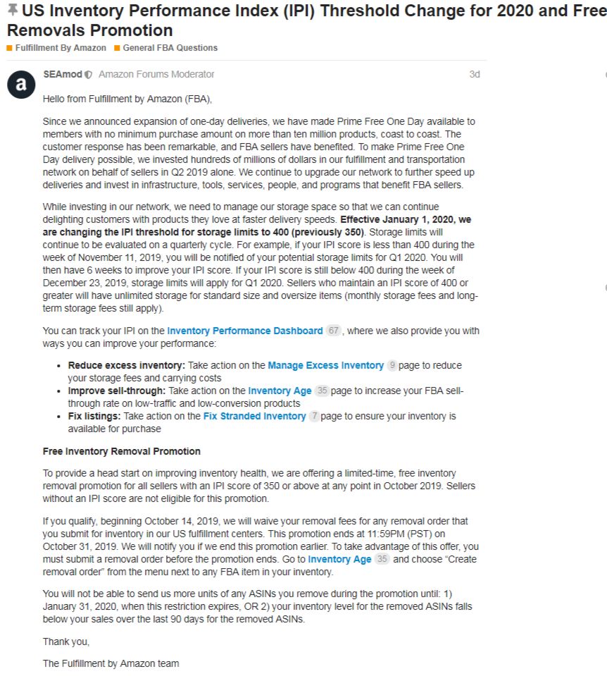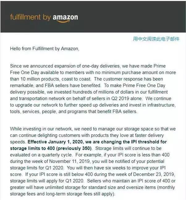 亚马逊在卖家论坛发布公告称,自2020年1月1日起,将存储限制的IPI分数达标值提高到400(以前为350)。未达标的卖家,其库容将被严格限制。 具体公告如下: (图源亚马逊卖家论坛) 公告内容指出,自亚马逊宣布扩大one-day deliveries(一日配送)以来,开始不断升级配送网络,以进一步加快配送速度,并投资于基础设施、工具、服务、人员和项目,以便能让购买商品的客户满意,让使用亚马逊物流卖家也能从中受益。 与此同时,公告中还提到了,为了更好地管理亚马逊的存储空间,自2020年1月1日起,存储限制将继续每季度评估一次。 如果你的IPI分数在2019年11月11日的那一周低于400,系统则会通知你2020年第一季度的潜在存储限制。然后,你将有6周的时间来提高IPI分数。如果你的IPI分数在2019年12月23日那一周仍低于400,则存储限制将适用于2020年第一季度。 保持IPI分数为400或更高的卖家将无限制地存储标准尺寸和超大物品(月度仓储费和仍需支付长期仓储费)。 因此,船长BI提醒卖家,今年第四季度就要开始检查IPI分数了,第一个检查时间点在11月11日那一周。 1、IPI分数<400:你的库容将受限制,超额库存将收取额外的费用。 超额库容收费(现有库容-给予库容)*月仓租超额费每立方英尺10美元 2、IPI分数>=400:下个季度无限库容,并保持一个季度不变,没有超额仓储费。 目前,已经有不少卖家收到了亚马逊发送的关于FBA库存绩效指标分数调整的通知邮件。接下来,卖家要开始调整运营策略了,备战旺季的同时,还需要改善IPI分数。 (图源卖家收到的邮件) 那么,卖家该如何提高IPI分数? 首先,我们要了解影响IPI分数的几个重要因素: 1、冗余库存百分比:被确定为冗余库存的亚马逊FBA商品所占的百分比,对过去90天的冗余库存情况的考核,库存过多会拖累你的利润。 2、亚马逊FBA售出率:过去90天售出并配送的商品数量处理该时间段内在亚马逊运营中心的平均可售商品数量。即对过去90天售出库存的考核,需要你的商品量和销售量达到平衡,避免库存老化和变得冗余。 3、 无在售信息的亚马逊库存百分比:当前无法供购买的亚马逊FBA库存商品所占的百分比。 4、亚马逊FBA存货率:可补货亚马逊FBA的ASIN在过去30天有货的实际所占的百分比(按每个sku在过去60天售出商品数量计算) 。 卖家要做的是: 1、减少冗余库存以便提高收益; 2、提高售出率以平衡库存可售周数; 3、修复无在售信息的亚马逊库存,确保库存可供购买; 4、保持畅销商品有货以便提高销量。 在卖家平台的“库存绩效控制面板”相关页面上都有提供对应的措施,卖家可以仔细参阅。 (图源亚马逊) IPI 控制面板会显示其中每个分类的绩效条,下图显示的就是IPI分数的表现情况。深绿色为优秀,这是卖家要努力达到的目标。 (图源亚马逊) 除此之外,卖家还可以通过船长BI的FBA库存管理和分析工具来优化你的库存健康。 船长BI一个页面,就能让你看懂所有店铺的FBA库存数据;并且可监测FBA上架可售商品、不可售商品、分析7天销量、7天退货率、超过3个月的库存等数据。 (点击查看大图) 此外,对于高库龄库存的数量、体积、货值等数据也一目了然,船长BI严控FBA补货风险,你只需手动设置好备货天数和FBA发货天数,系统将自动帮你计算可售天数和需要开始备货的产品数量。补货有的放矢,冗余库存不再怕。 这段时间一直再说“旺季”和“政策”相关的内容,可能部分卖家已经审美疲劳了。但这里船长BI不得不再次强调,旺季在即,不容有失!卖家要多留意亚马逊的新动态,不管是否会给你带来影响,都不能忽视,最后预祝大家Q4大卖!