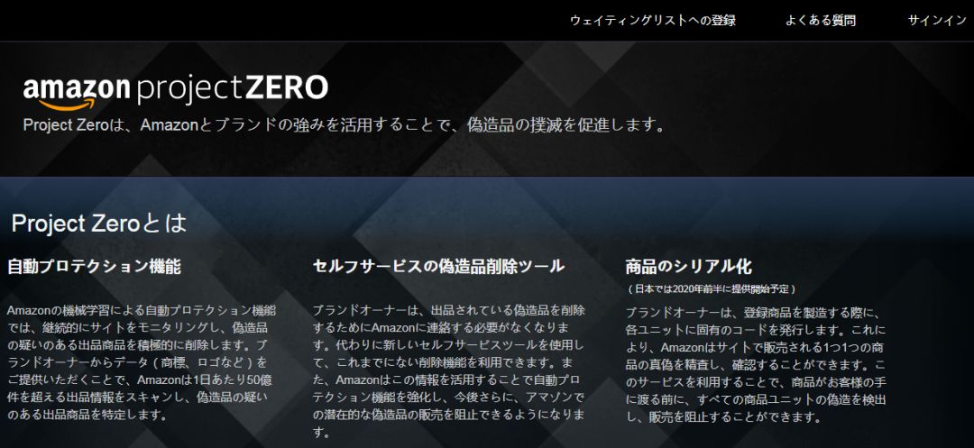 相信很多卖家对于Project Zero的三大功能服务已经都有了解过,自动保护功能和自助仿冒产品移除工具已经向日本站卖家开放,产品序列化功能或于2020年上半年才能使用。