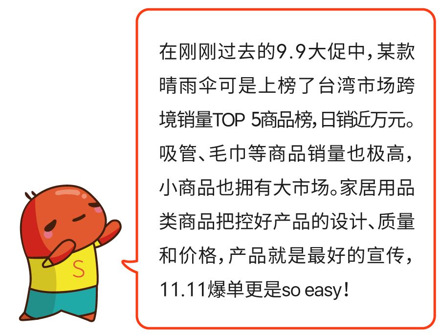 以上女装、美妆护肤、母婴用品、家居用品均为Shopee台湾市场Q4重点类目,请卖家们多多上新,符合相应要求更有达标奖励!