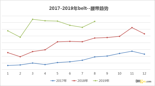 受下半年海外节庆和采购季影响,腰带销售持续上升,历年销售峰值出现在11月。