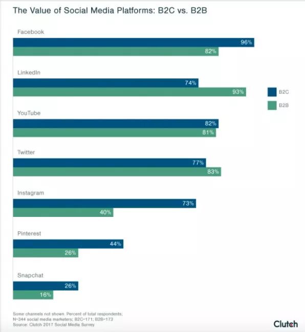 很多公司认为YouTube是一个严格意义上的B2C渠道。目前,smart insights和clutch将YouTube列为B2B营销人员最有价值的第四大社交渠道。YouTube对营销人员的统计数据不仅仅适用于B2C行业。YouTube人口统计的多样性也延伸到B2B世界。