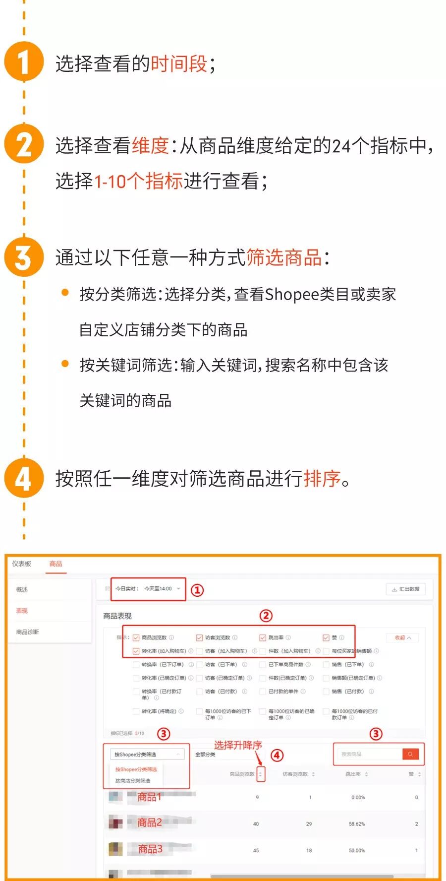商品表现部分有店铺所有商品的详情数据,我们可以进行以下操作:
