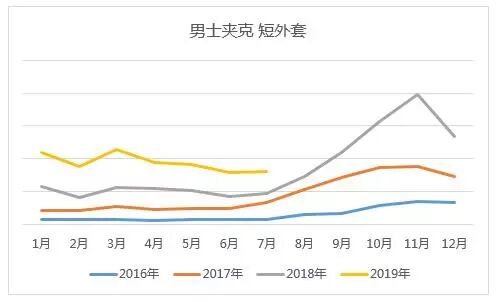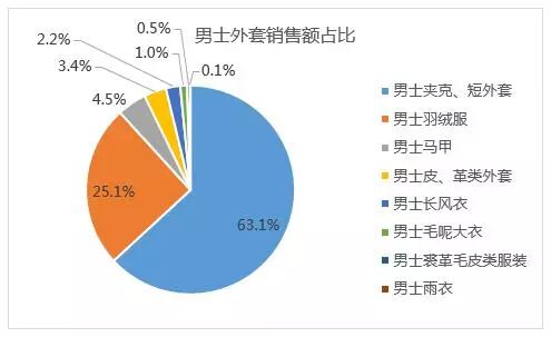 敦煌网男士外套下设8条产品线,其中夹克短外套占比超过60%,羽绒服占比25%,其他产品线占比总计12%。