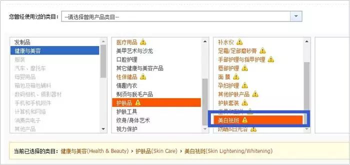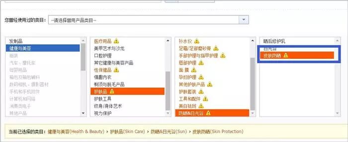 特殊用途化妆品各个类目发布路径如下: