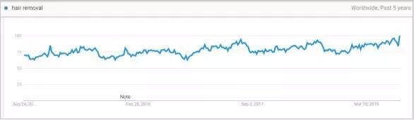脱毛产品:近5年,搜索稳步上升,老外体毛重,为了美观,大多有脱毛需求。