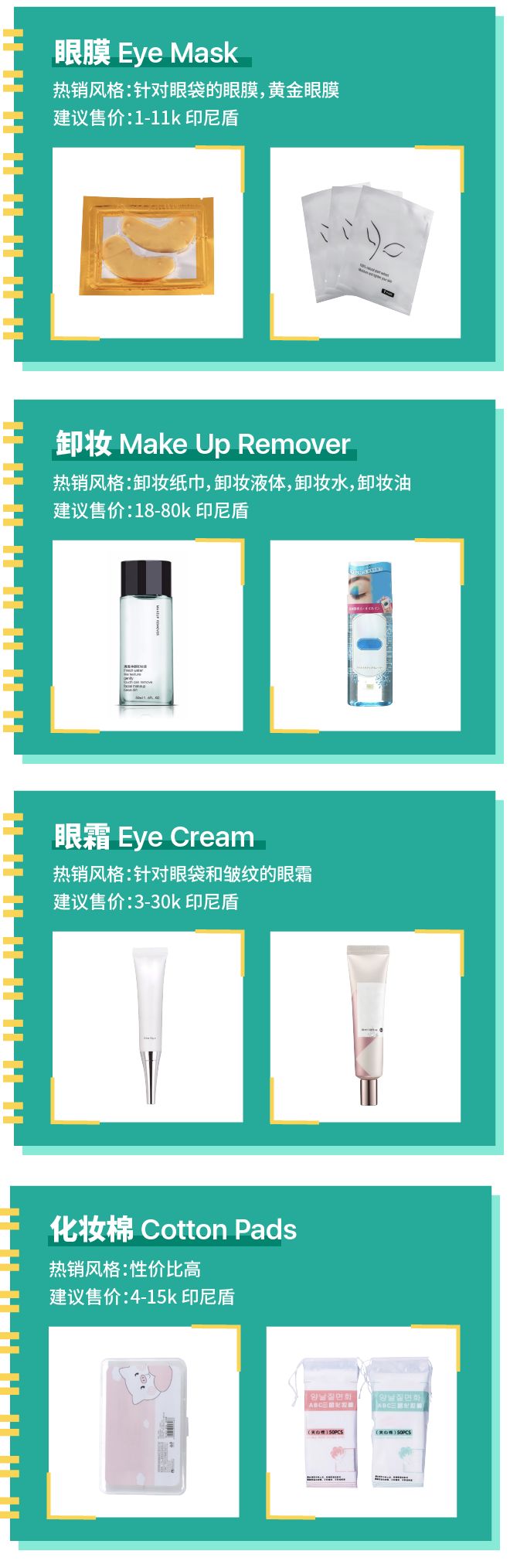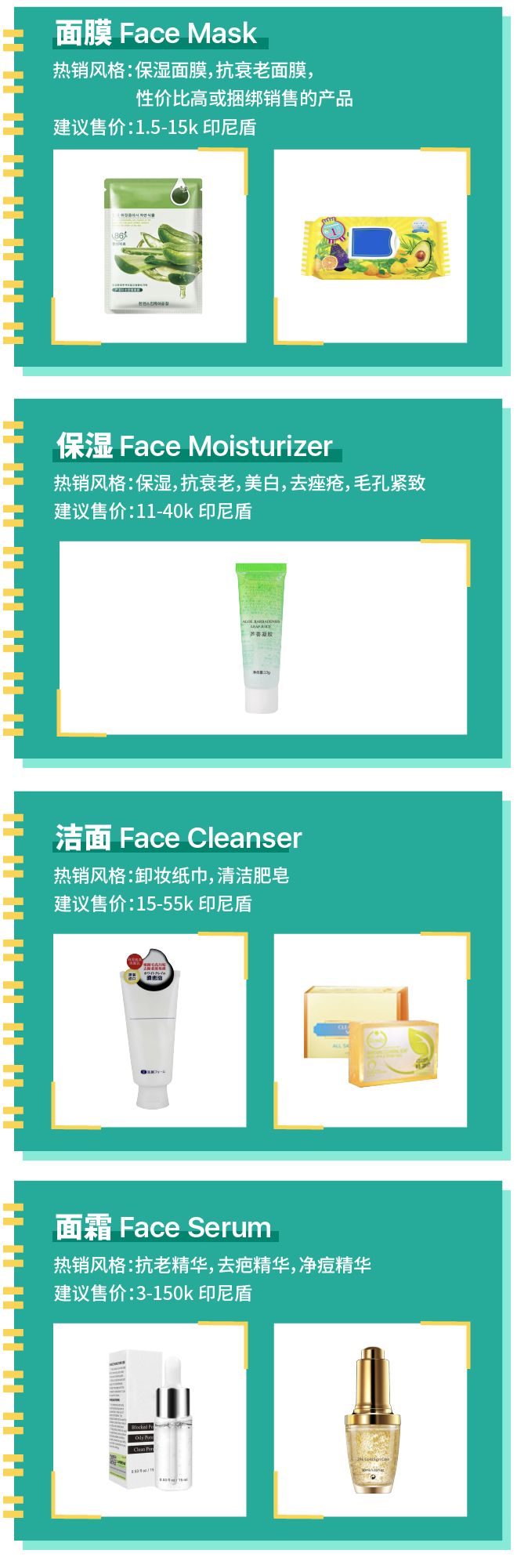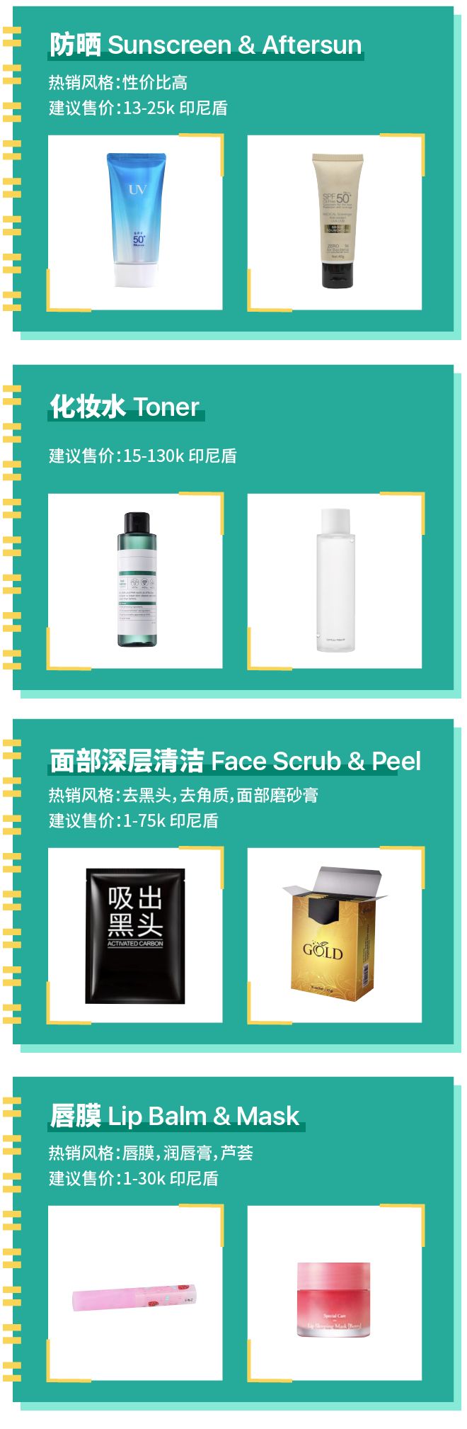 面部护肤品的种类十分丰富,面膜和面膜工具作为消耗品在印尼是非常畅销的产品。印尼美妆市场受Instagram美妆博主的影响很大,卖家可以多参考Ins上的热搜词进行选品。