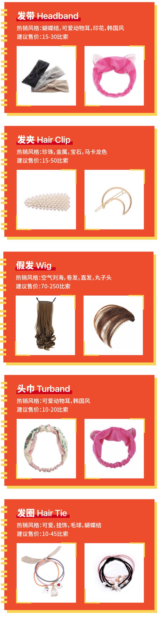 菲律宾买家对价格比较敏感,倾向于选择50比索以内的发饰。韩国风的配饰在菲律宾是热销产品,卖家进行选品时可多往珍珠、金属、可爱动物耳、蝴蝶结等元素进行考虑。产品要求时尚美观,图片有产品实物、模特图、多选项为佳。
