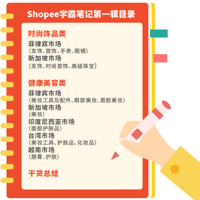 话不多说,一起来跟随小编看看《Shopee学霸笔记》第一部分:Q3时尚饰品(菲律宾、新加坡市场)和健康美容(菲律宾、新加坡、印度尼西亚、台湾、越南市场)品类店铺建议与热卖商品。