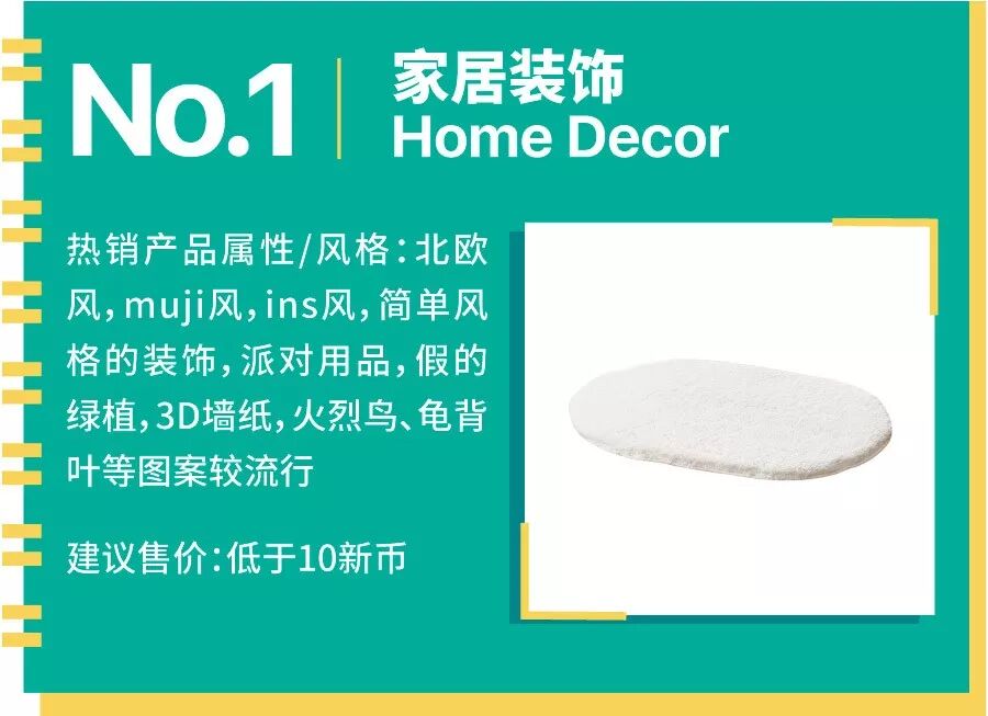 在家居装饰方面,新加坡买家注重生活质量,因此在产品风格挑选上,会更加偏向体现生活品质的ins风、北欧风等,低于10新币的产品较为热销。